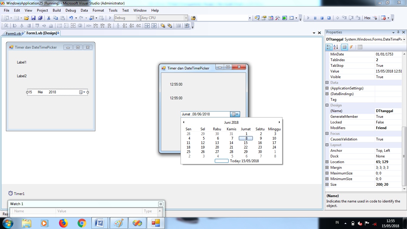 3.Tambahkan kontrol ke form seperti pada gambar diatas dan atur propertinya seperti tabel berikut: